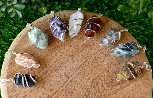 Raw Gemstones Pendant Necklace | Rough Metal Wrapped Pendant